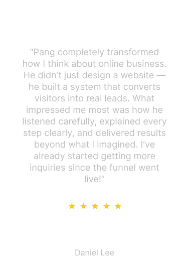 Hi, I’m Pang Yuan — a funnel strategist and landing page designer who helps businesses turn clicks into customers. I build conversion-focused funnels, high-impact landing pages, and automation systems that attract leads and drive consistent sales.